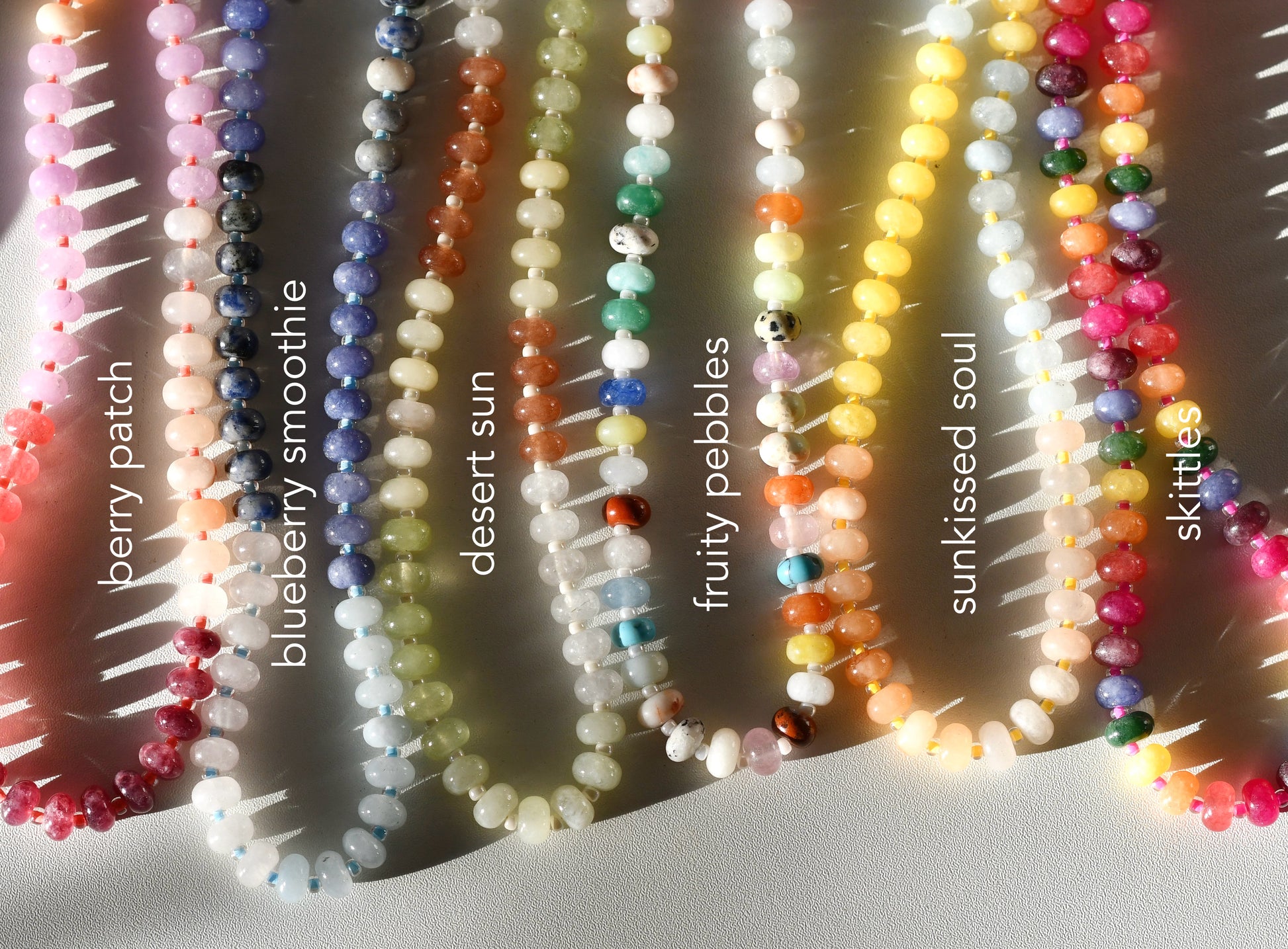 This is a gorgeous gemstone necklace that has pretty heishi/rondelle beads. They come in many different colors and are extremely durable! These findings will not tarnish or rust!