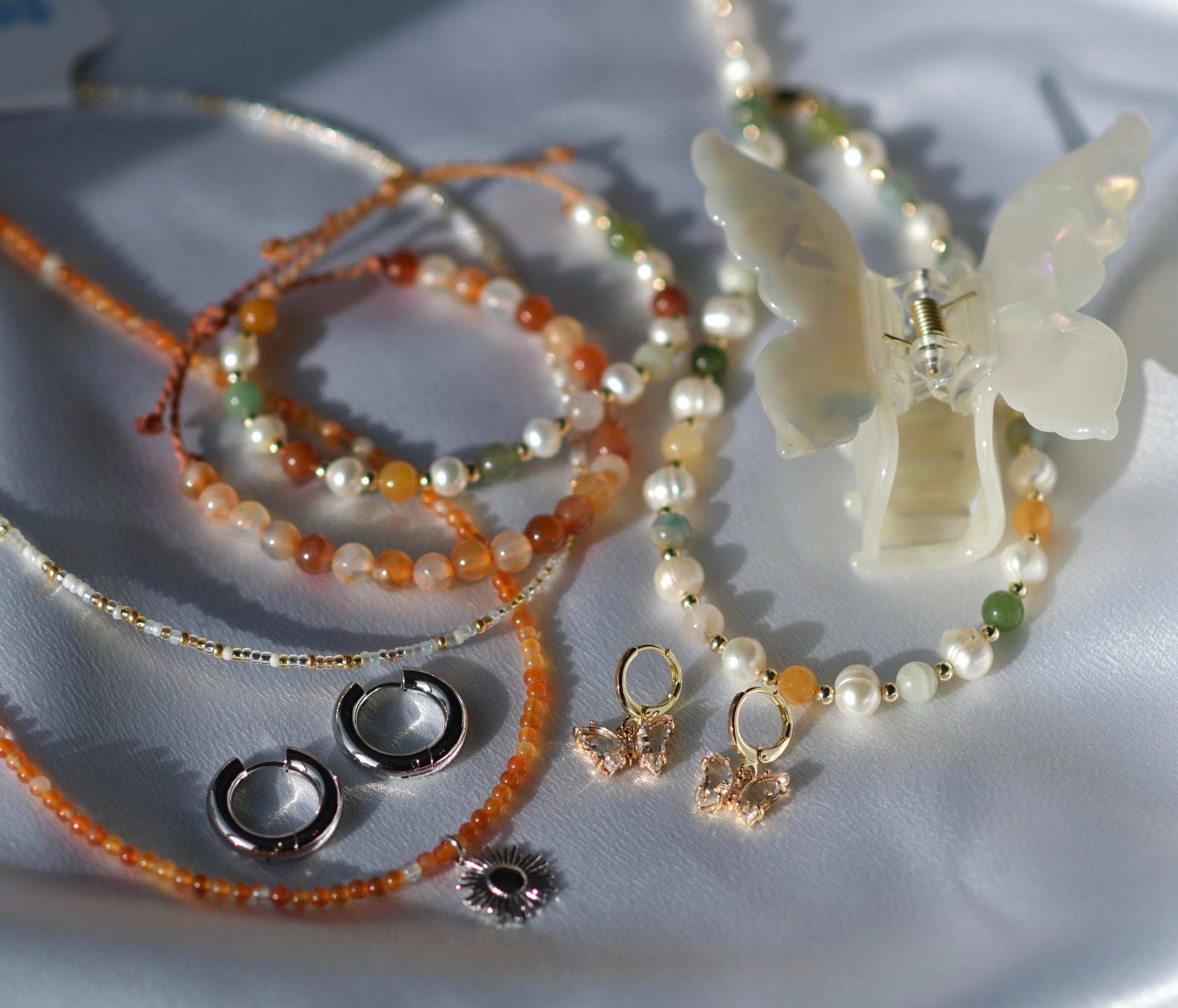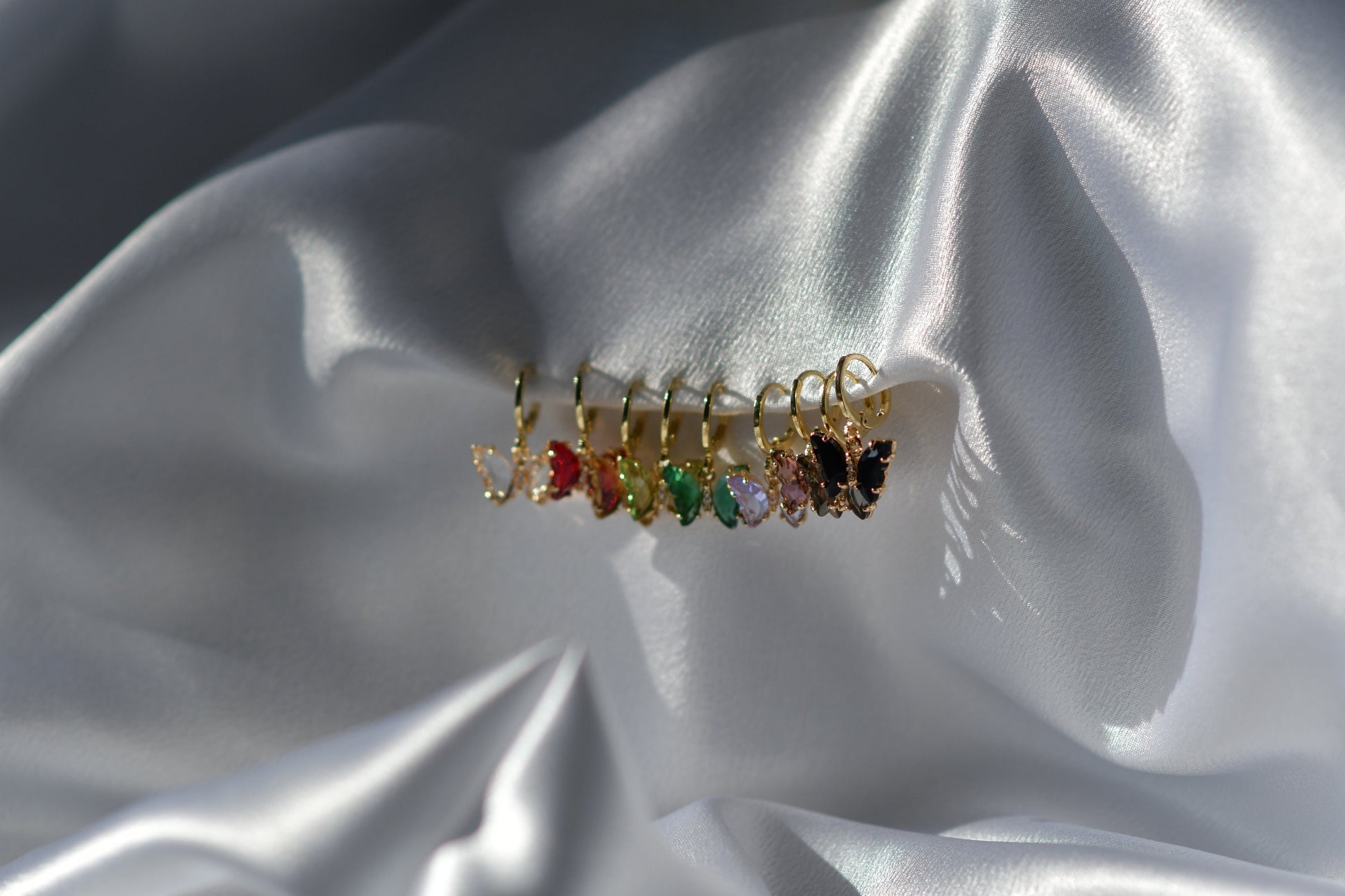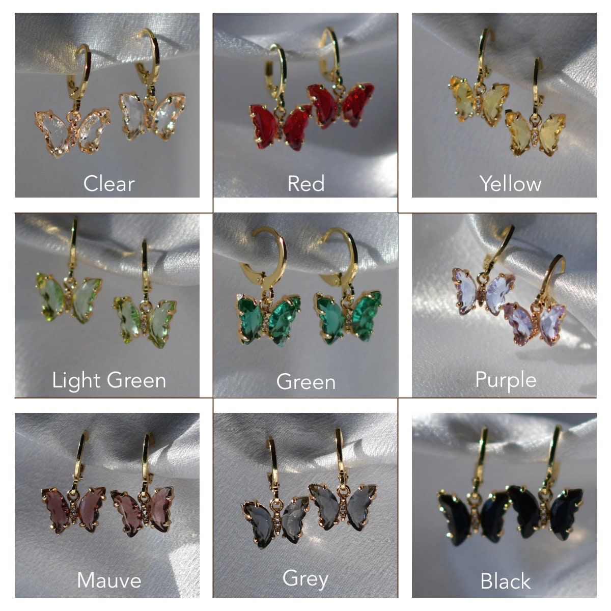 Crystal butterfly earrings! These are so sparkly and come in the cutest colors. Come with either lever back huggie findings or fish hook findings with silicone earring backings.