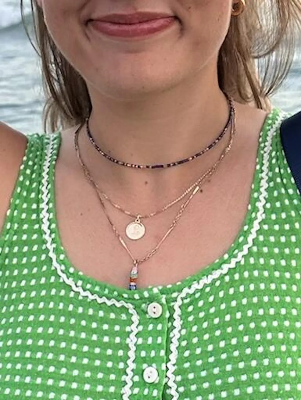 Awesome color combos and exceptionally speedy processing/delivery. Beads are exactly the size I was hoping for, and the 14”+extender gives enough play for either choker or loosening up for layering. Has survived frequent pool and ocean exposure, still going strong. Will be back!
