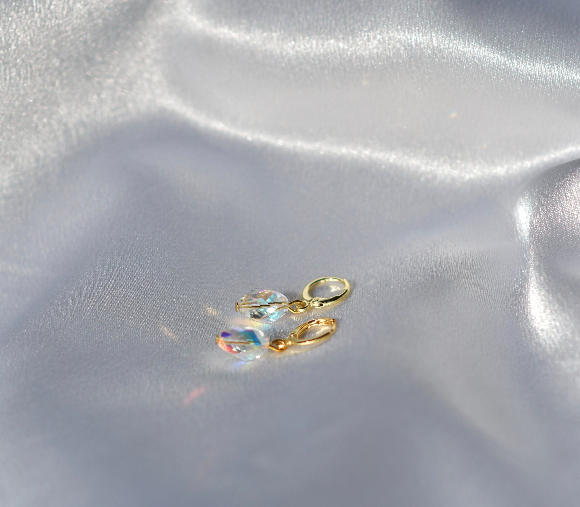 The sparkliest earrings ever! Come with either lever back huggie findings or fish hook findings with silicone earring backings.