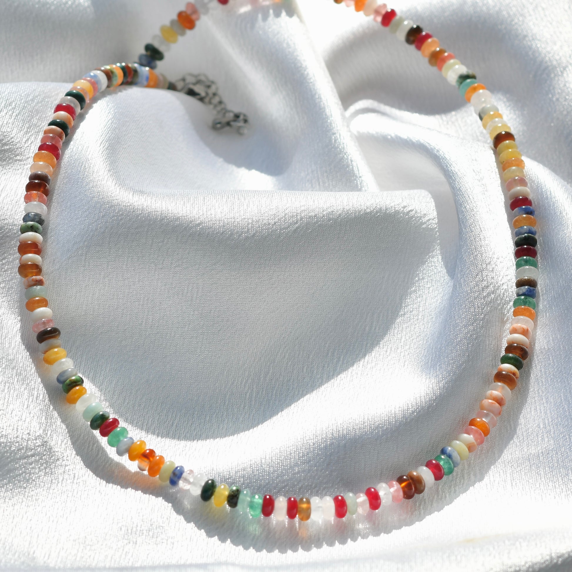 Muted Mixed Rondelle Gemstone Beaded Necklace