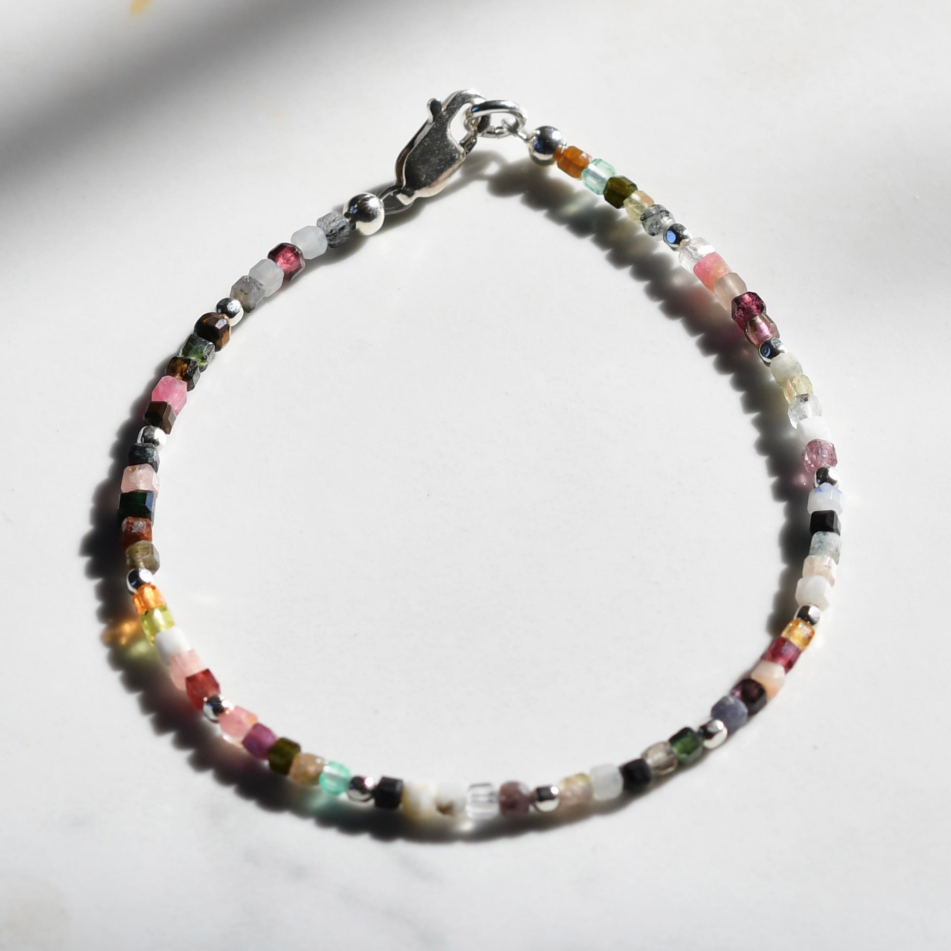 Tiny Cube Gemstone & Metal Beaded Bracelet/Anklet